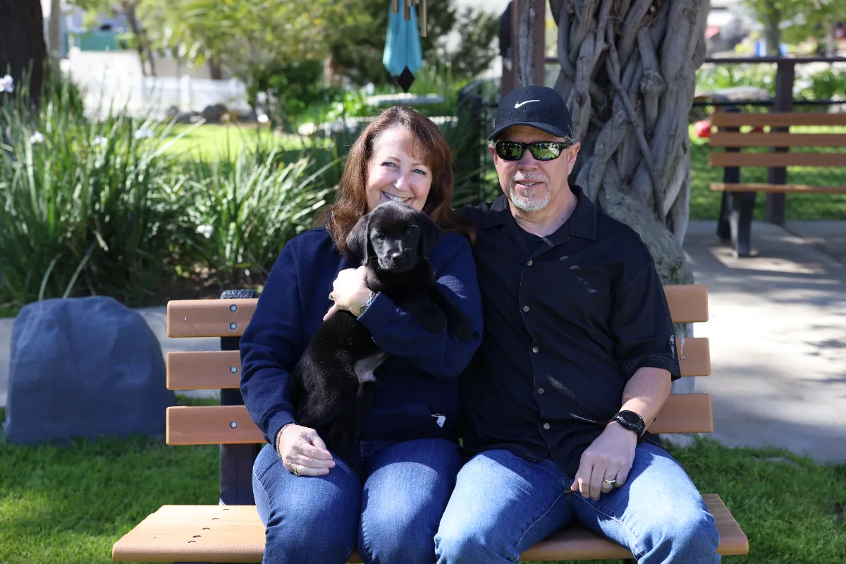 Meet Brooks, your new sponsored puppy – what a face! He was born January 27, is a black labrador/golden cross and went home Friday with Tammy and Mark.