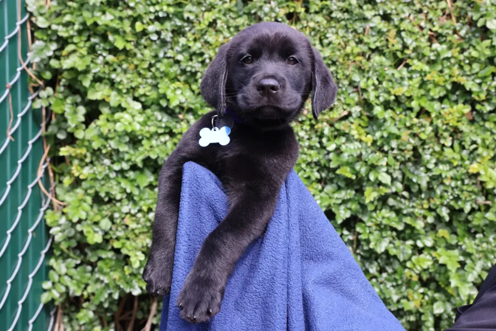 Meet Brooks, your new sponsored puppy – what a face! He was born January 27, is a black labrador/golden cross and went home Friday with Tammy and Mark.