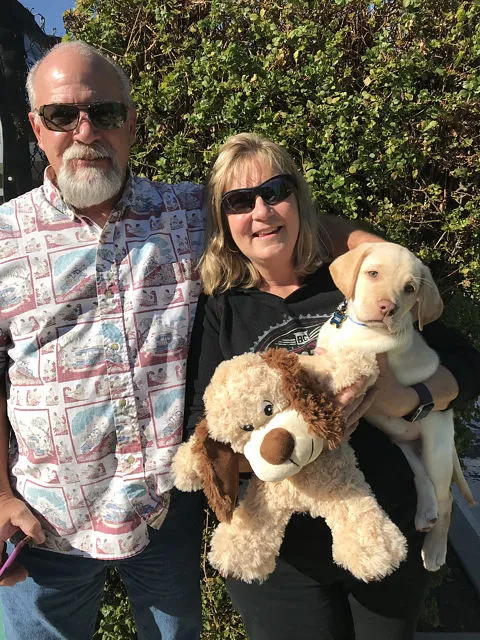 Meet pretty blonde boy Jamus! He was born 10-14-19 and went home with his puppy raiser Joanne, from our Orange County group.