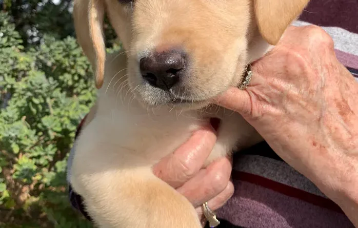 A very adorable Yellow Labrador, Skyler was born on 9-20-21. She is being raised by Brian and Nancy at “Camp Matthews.”