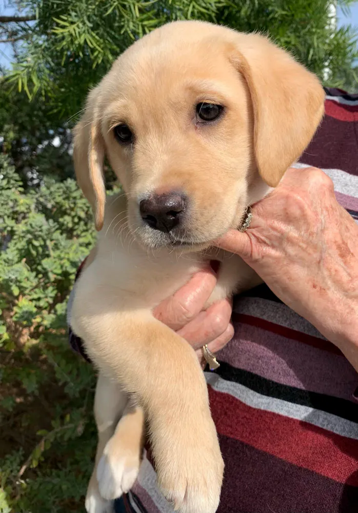 A very adorable Yellow Labrador, Skyler was born on 9-20-21. She is being raised by Brian and Nancy at “Camp Matthews.”